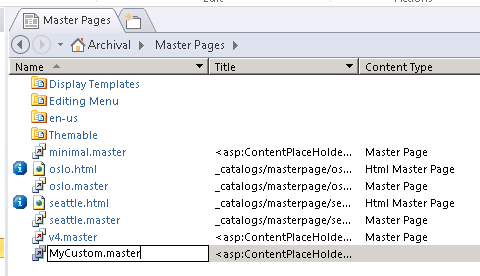 - Rename the file as MyCustom.master.