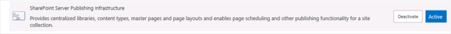 - Make sure that “SharePoint Server Publishing Infrastructure” is active on the site.