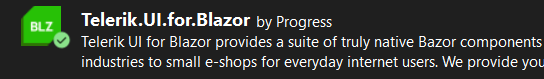 Open NuGet Package Manager and search for "Telerik.UI.for.Blazor" and install the following package.