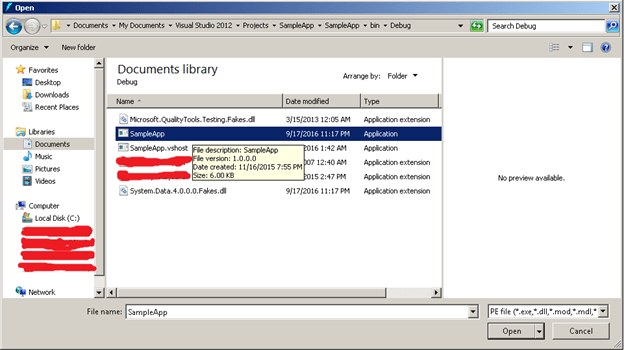 Click File Menu to open the menu and click the Open Menu Item, which will bring up the Window to browse the executable, which we want to disassemble.