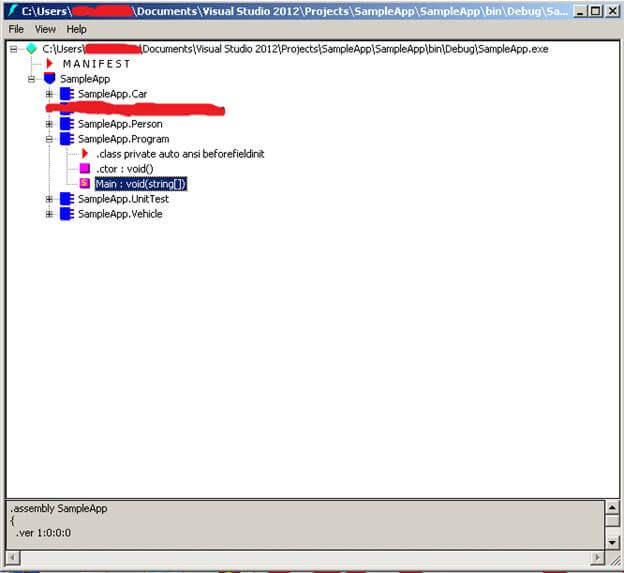 This will bring up the code of the assembly in a hierarchical form, as we have multiple classes written in the assembly, so it has listed down all the classes.
