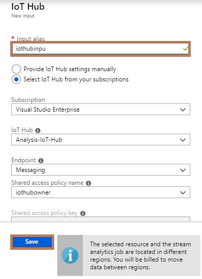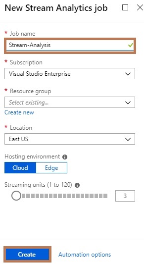 - Create a Stream Analytics job; the job name is Stream - Analysis.