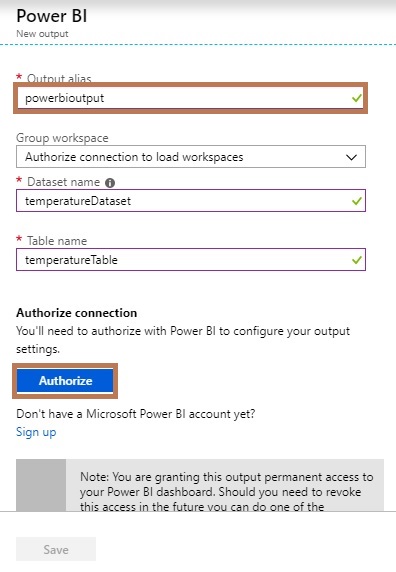 - Copy and paste the SQL below into your Stream Analytics query window.