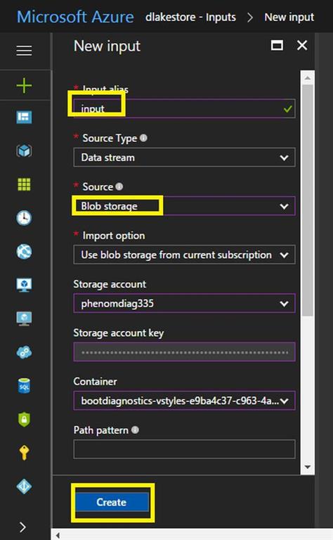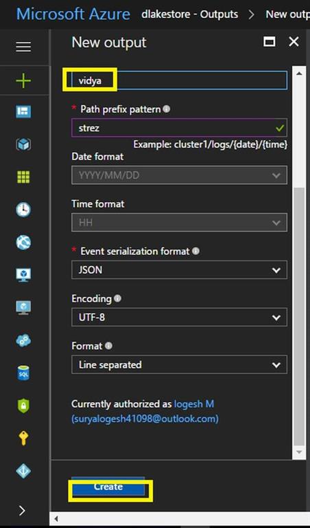 Provide a name for the output alias and provide a name as well as for the path prefix pattern and click Create.