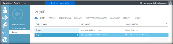 Now in Azure Active Directory listing we can see the users who are the global administrators of the Office 365 directory added to Azure.