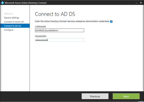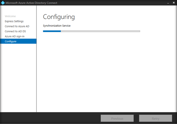 - We can continue with Express settings, if we want to use Azure AD Connect to synchronize the directories (On Premise with Office 365 along with Password Synchronization.