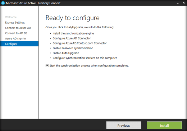 Click on Install to start the synchronization process once Azure AD Connect installation completes.