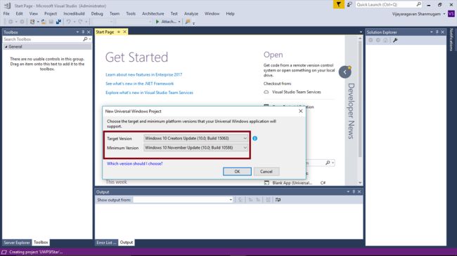 Choose the target and minimum platform version that your Windows Universal application will support. After, the project creates App.xaml and MainPage.xaml.