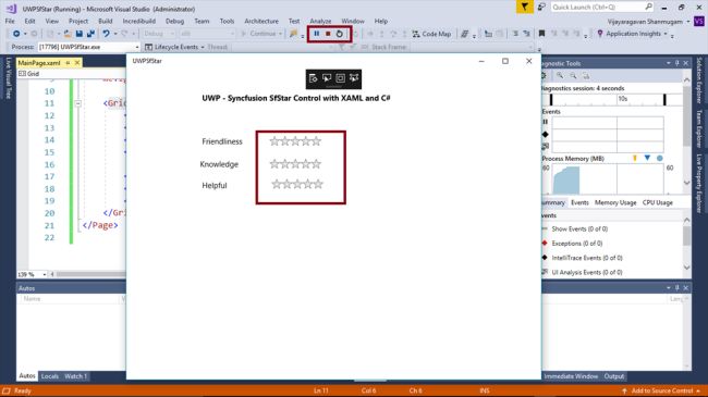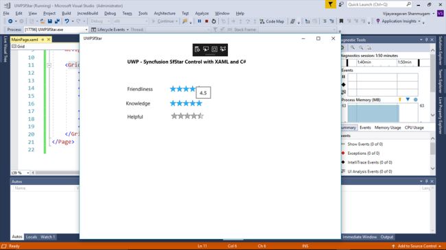 Now, we have successfully tested Syncfusion SFRating Control in Visual C# - UWP environment.