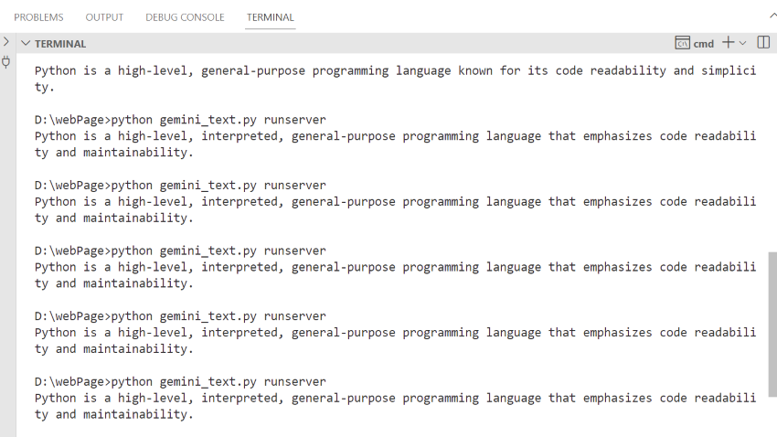 - print(response.text): Finally, this line prints the generated content returned by the generative model.