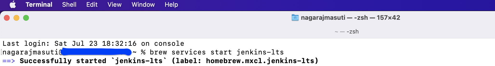 After installing, in the terminal, use the below command to start the Jenkins server in local: