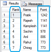 Let us consider anothe. There are members having points and based on points you want to give rank to them. This can be achieved easily using Rank() function.