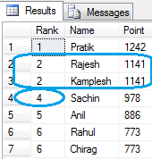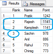 - , DENSE_RANK() OVER( ORDER BY Point desc) AS [DENSE_RANK]