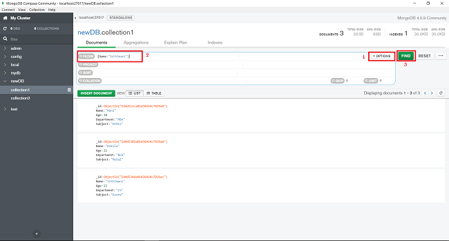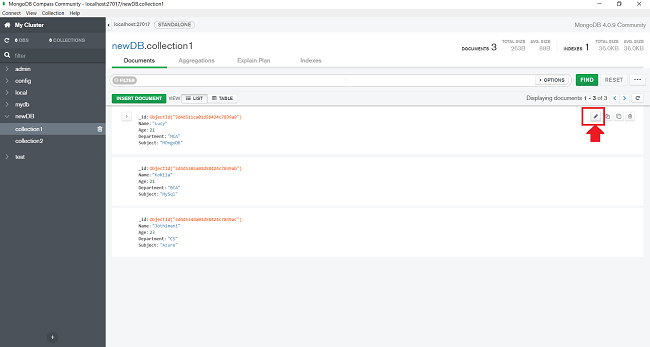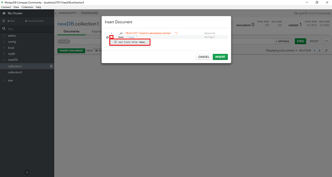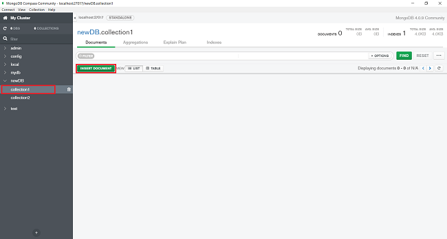 Now, it is time to insert a document in our created collection by doing the below instructions.