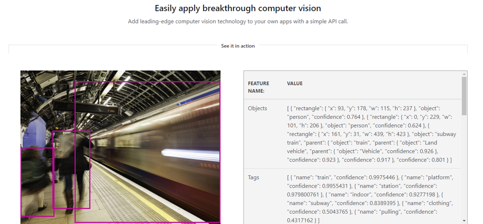 You can use Computer Vision in your application by invoking the REST API directly or by using a native SDK. Computer Vision’s algorithms will allow you to process images and return information, by either uploading an image or specifying an image URL.