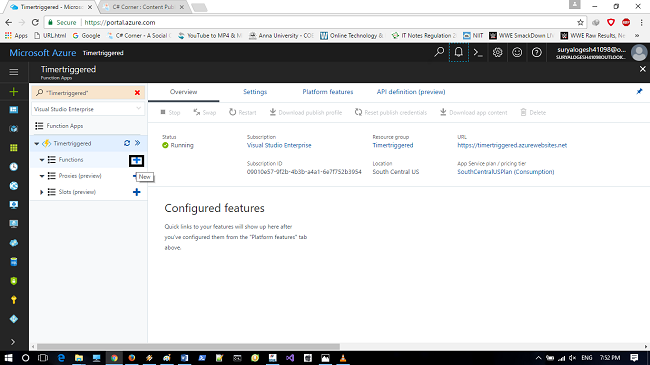 Now, for creating a time triggered function, we need to create a function in a new function application.