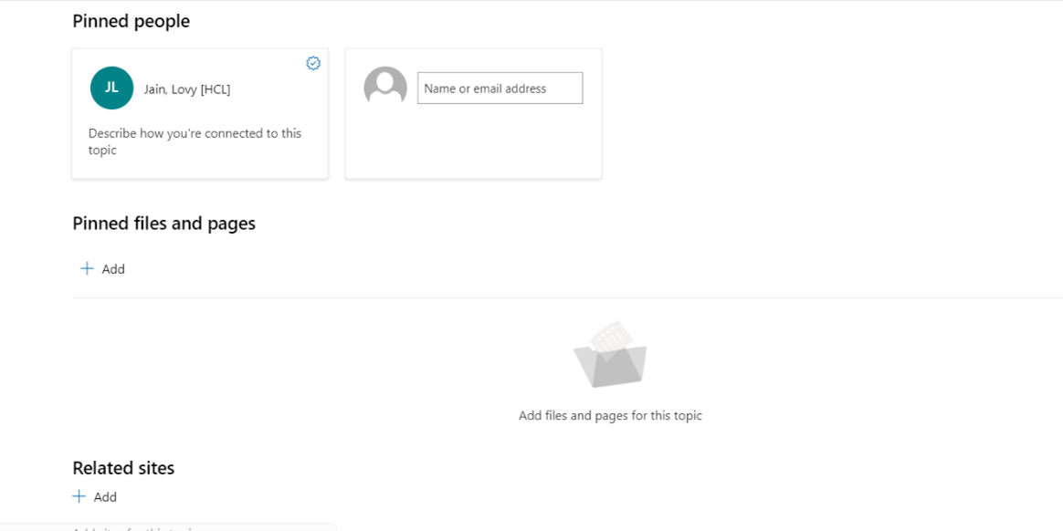 Once the topics site is ready, if you don’t see any topics being discovered (as it takes time for AI to create suggested topics) you can create your own manually.
