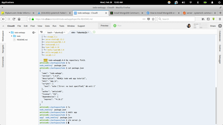 Don’t stop the MongoDB server otherwise it won’t get connected with our MEANjs application.