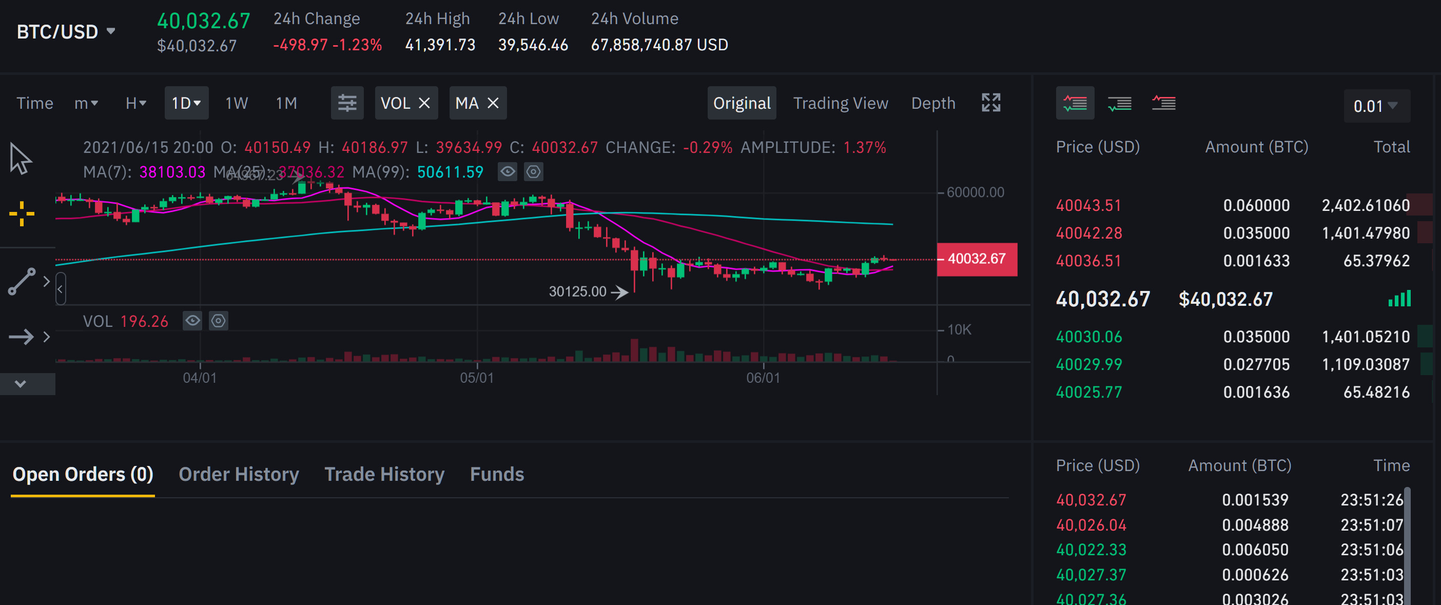 Binance.us offers easy to buy and sell options with a simple user interface. The screen also offers current market buy and sell orders.