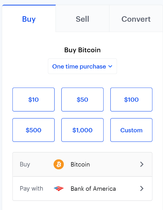 The platform also has simple options to buy, sell, and convert after a bank account or credit card is linked to the account.