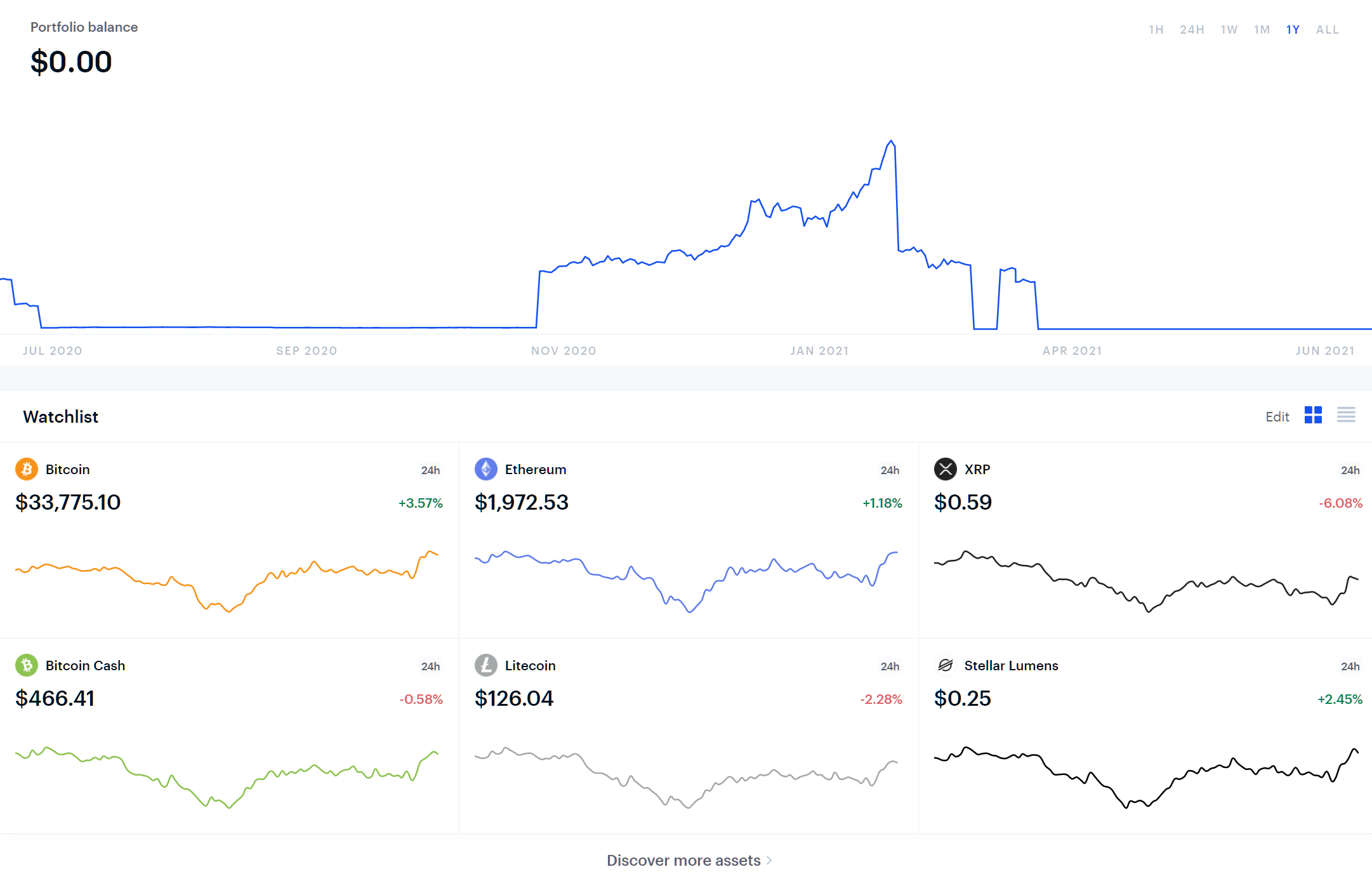 View current balances for each asset, in your preferred quote currency