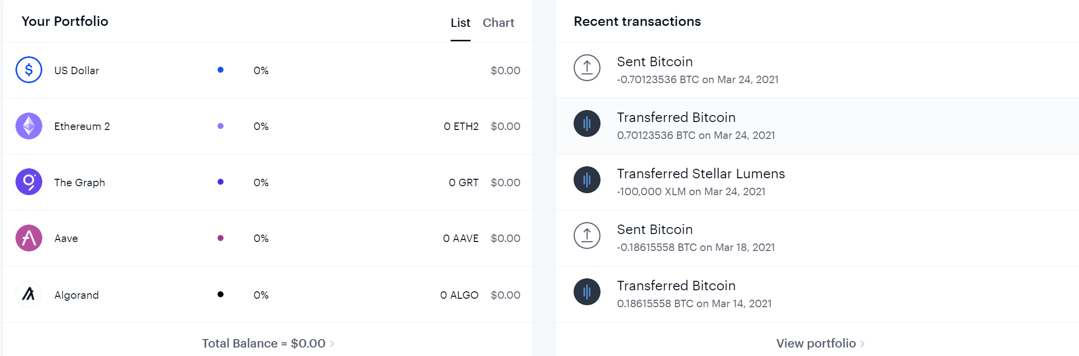 You can also see your portfolio and recent transactions.