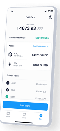 DeFi Wallet allows users to create their keys and earn interest in crypto. It also allows DiFi Swaps and earns Triple Yield.