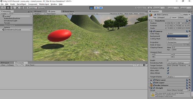 Click on the Play button. The sphere will now appear in-game View.