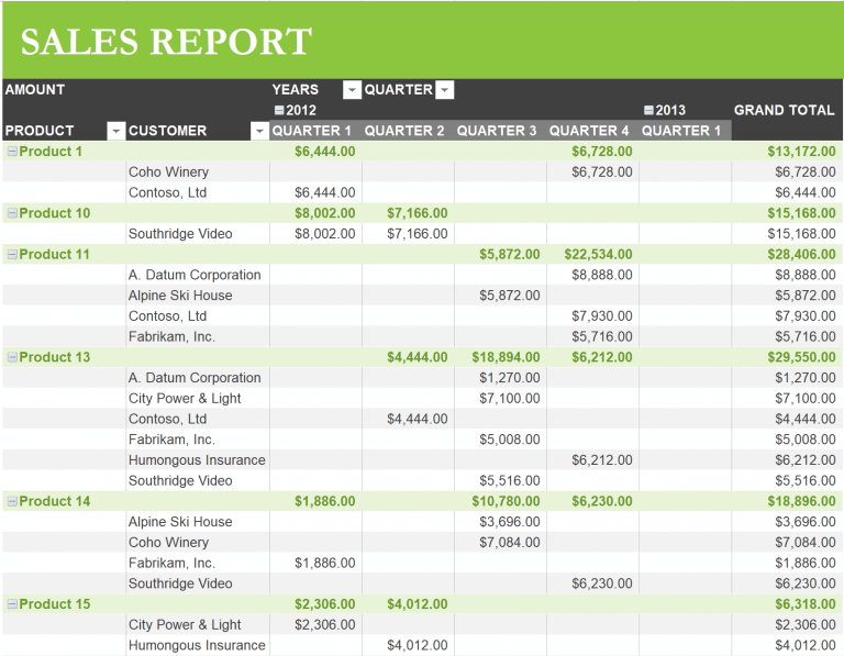 Take this snapshot of a report. It lists down the total sales and sales per customer in a company. This is a standard tabular format used for depicting sales reports.