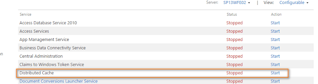 - Whereas in the dedicated configuration, you can choose either one server to be dedicated Distributed Cache servers and other web serversMUST have STOPPED status. The Distributed Cache instance MUST be available on all SharePoint servers.
