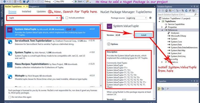 Recently, Microsoft announced various new features in C# 7.0 with Visual Studio 2017. In C# 7.0, some new feature of tuples are enhanced with Visual Studio 2017. Tuples aren’t new in C# or.NET. They were first introduced as a part of.NET Framework 4.0. This useful feature of the tuple is all about returning multiple value without having:
