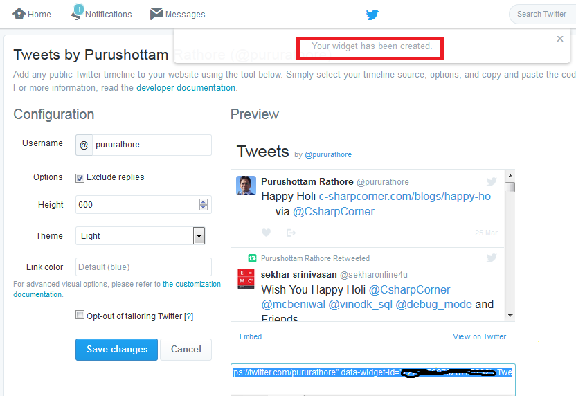 Here is a simple code to get a Twitter widget. Firstly, all we need to get is the Twitter widget id.