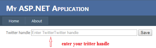 - <asp:TextBox ID="TextBoxTwitterhandle" runat="server" Style="width: 350px;" placeholder="Enter TwitterTwitter handle"