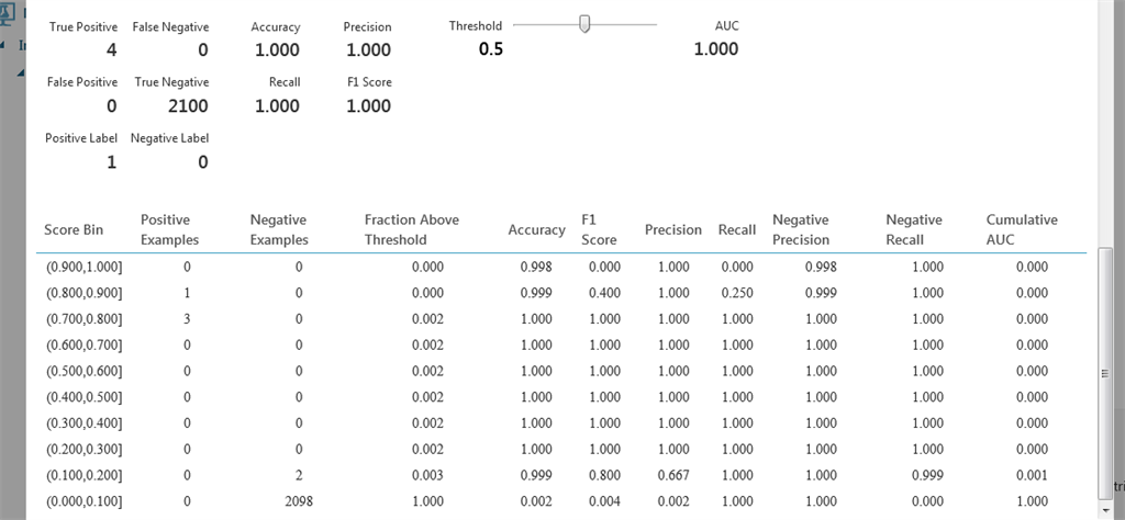 Accuracy = (TP+TN)/(TP+TN+FP+FN)= 1.000. Type 1 Error = (FP)/(FP+TN) = 0