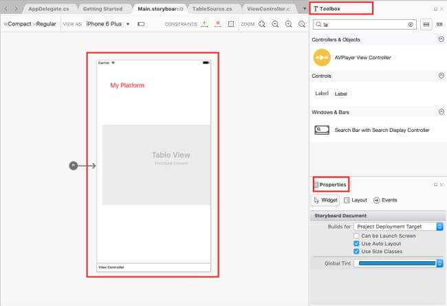 In this step design your app.using storyboard, Toolbox and Properties.