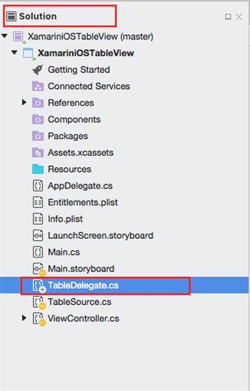 Go to Solution—>Resource—>Right click—>Add—>New File—>Select Empty Class. and give name (Ex: TableDelegate.cs).