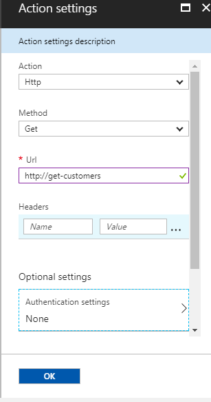 - Then, we will hit the URL which we mentioned in the Action Settings, i.e., http://get-customers.azurewebsites.com/