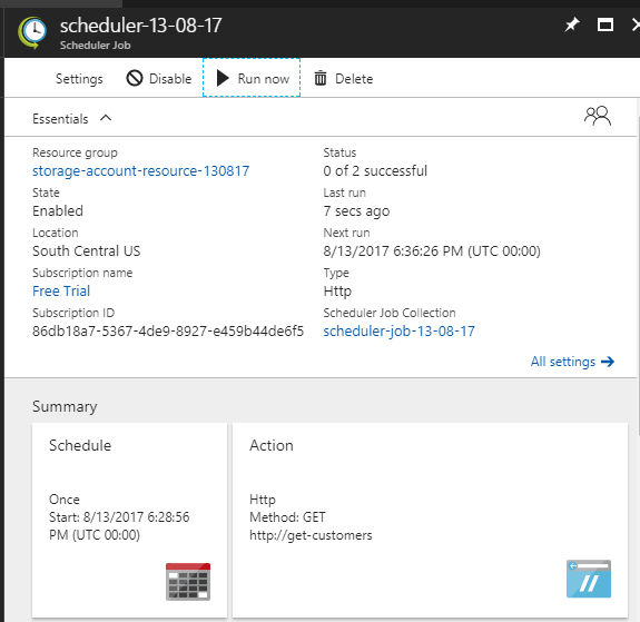 - Go to the scheduler-service and click “Run now”.