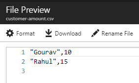 - Click on the Output tab and click “customer-amount.csv” to see the file.