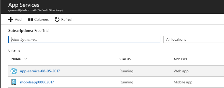 - Go to the "App Services" section and see the newly created Mobile App.