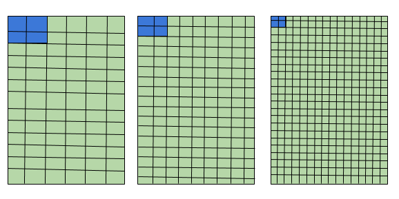 Taking an example of three devices of the same physical size but different resolution.