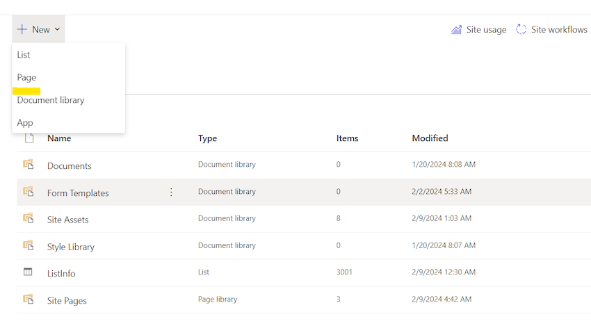 - Click on "Site Contents" in the left-hand navigation menu.