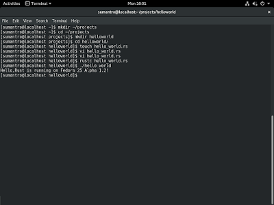 You can use  dnf install rust and get started with Rust. Here's the demo  program on Fedora 25.