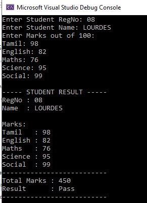 Console.WriteLine("\n----- STUDENT RESULT -----");