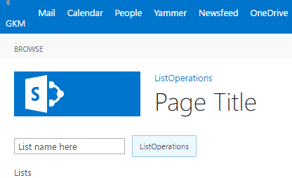 - <div id="starter"> <input type="text" value="List name here" id="ListOperations" /><button id="createlistbutton">ListOperations</button>