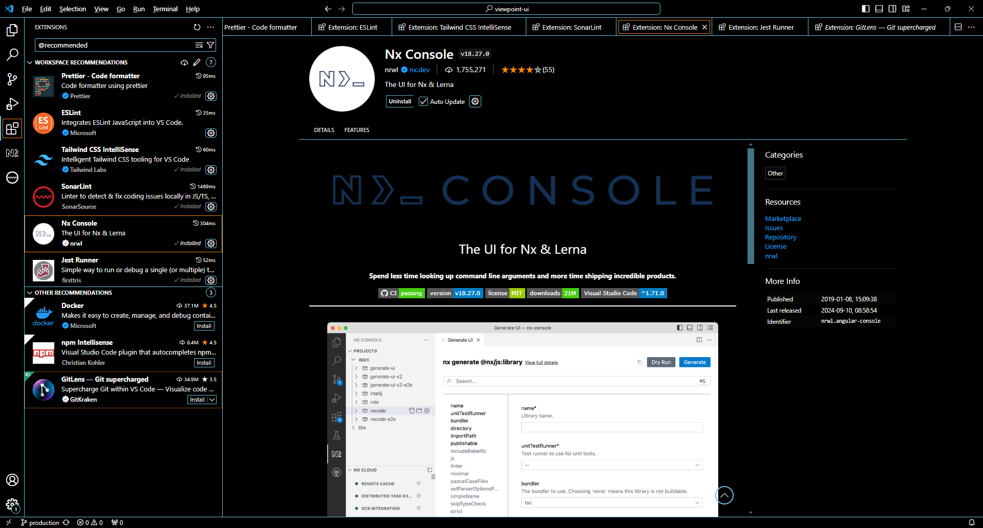 with extension: Nx Cosole --- this tool is very useful for SPA development and will be discussed in details later