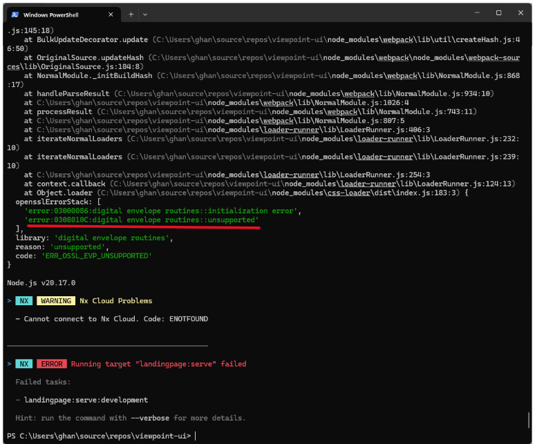 - This error typically occurs when there are issues with the OpenSSL and cryptographic algorithms being used by the Node.js. It is often related to the compatibility between the Node.js version and the OpenSSL version installed on the system.
