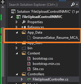 The file has been stored in a physical location. Here, we mentioned storing in the App_Data folder.