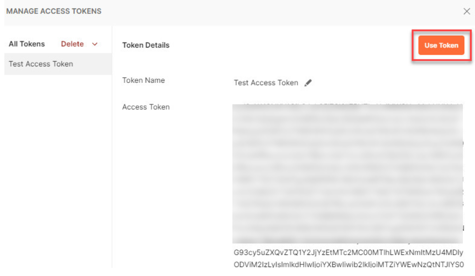 Immediately, there is another window that shows the output of the Access Token that was generated. Click on the button ‘Use Token’.