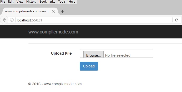 Now click on Upload button without selecting file then the following error message is visible which we have defined in model class as,